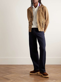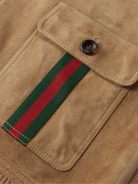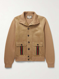 Gucci's vintage-inspired jacket has been crafted in Italy from tonal panels of soft wool and supple suede - the latter of which is lined in satin-twill. It's detailed with the house’s signature striped webbing along the flap pockets and has a high, ribbed-knit collar that can easily be folded down. Size & Fit - Fits true to size. Take your normal size - Designed for a regular fit - Supple, non-stretchy suede with stretchy panels - Model is shown wearing a M - Model measures: chest 38"/ 96cm, height 6'2"/ 188cm Details & Care - Camel suede and wool, red and green webbing - Button fastenings - Fabric1: 100% wool; fabric2: 100% suede (Lamb); trim1: 89% wool, 10% polyamide, 1% elastane; trim2: 45% acrylic, 45% wool, 10% polyester; lining: 100% viscose - Specialist clean