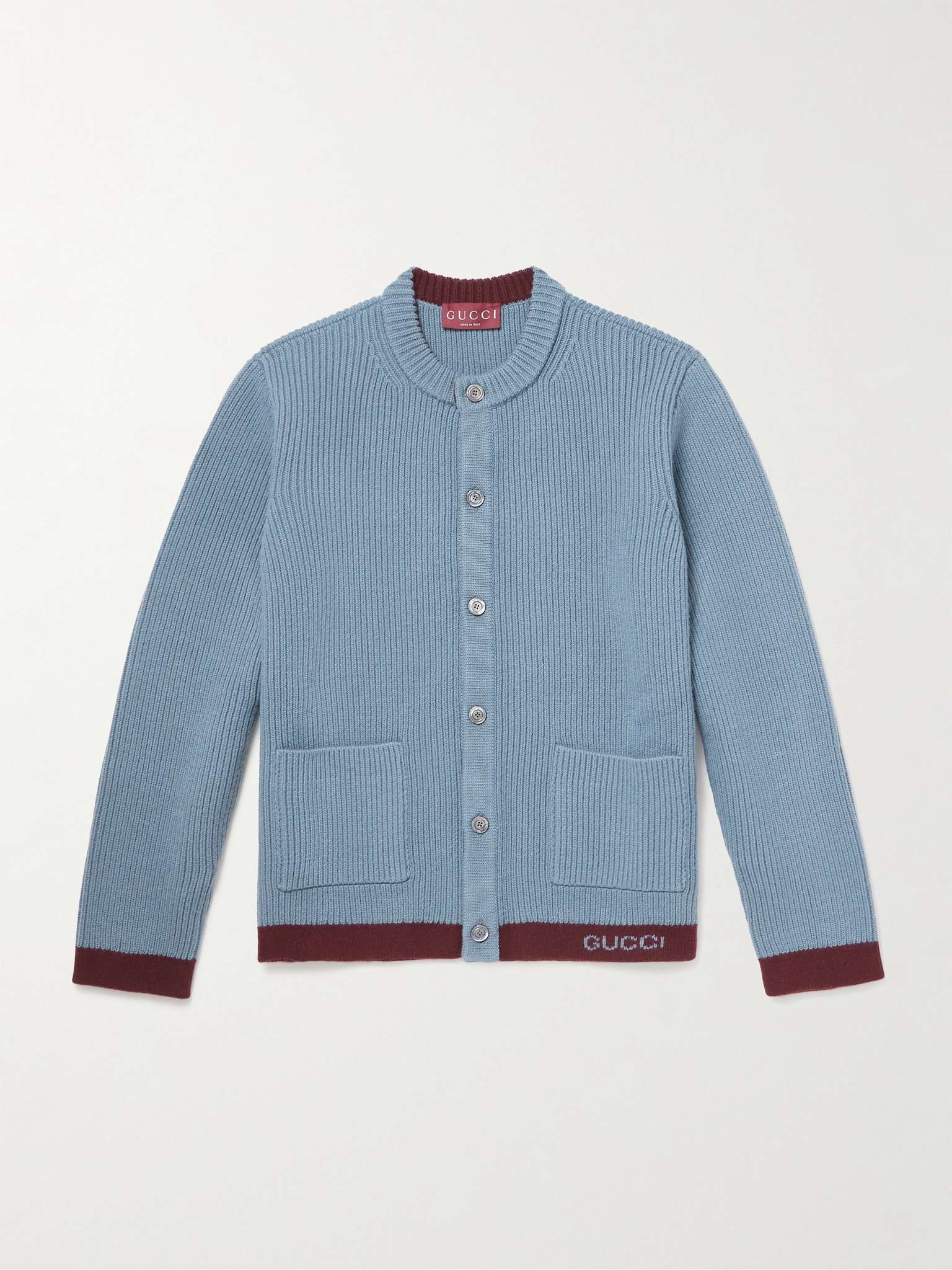 Two-Tone Logo-Jacquard Ribbed Wool Cardigan