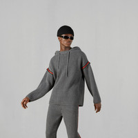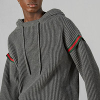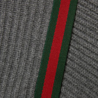 Ever since it first appeared, the green and red Web stripe has been one of the House's hallmarks. Here, the archival motif runs along the sleeves of this wool cashmere sweater with hood. - Grey wool cashmere - Rib trim - Green and red Web detail - Fixed hood with drawstring - Long sleeves - Length: 27" based on a size medium - Made in Italy - The product shown in this image is a size medium