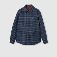 Urban essential outerwear blends sophistication and sumptuous materials with a refined touch for the Pre-Fall 2025 collection. Crafted from dark blue and white brushed wool flannel, this jacket features a Double G embroidery on the chest pocket. - Dark blue and white brushed wool flannel - Double G embroidery - Quilted lining - Point collar - Chest pocket - Long sleeves - Front zip closure - Made in Italy