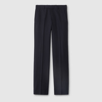 The Cruise 2026 men's collection is a journey through legacy and modernity rooted in Gucci's archives. Crafted from dark blue dry wool gabardine, this pair of pants is enriched with a logo embroidery. - Dark blue dry wool gabardine - Gucci logo embroidery - Belt loops - Side pockets - Back pockets - Hook and zip closure - Length: 45.6"; based on size 46 (IT) - Hem width: 9.6"; based on size 46 (IT)