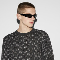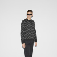 Part of the men's Fall Winter 2024 collection, everyday ready-to-wear pieces are elevated thanks to high quality materials and impeccable craftsmanship. This sweater appears in dark grey and black GG knit wool jacquard recalling the House heritage. - Dark grey and black knit wool jacquard with GG Shadow - Crewneck - Long sleeves - Rib trim - Shoulder drop: 16.9"; based on a size S - Chest: 19.6"; based on a size S - Sleeves length: 25.9"; based on a size S - Length: 25.1"; based on a size S - The product shown in this image is a size small