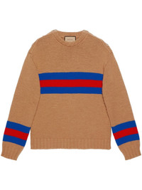striped wool-blend jumper Highlights - Beige - Blue - Orange - Wool blend - Horizontal stripe pattern - Button fastening at the shoulder - Long sleeves - Round neck - Ribbed cuffs and hem - Straight hem Composition Wool 85%, Mohair 10%, Polyamide 5%