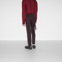 Creative Director Sabato De Sarno reinvents the essential men's wardrobe for the Fall Winter 2024 collection, with wearabilty and fit becoming key statements. Pants with an easy fit speak to a more contemporary attitude. This pair in burgundy wool is elevated with a subtle Gucci embroidery. - Burgundy wool - Gucci embroidery - Internal curtained waistband - Belt loops - Two side slash pockets - Two back pockets - Waist: 16.3" - Hips: 19.7" - Hem width: 7.5" - Length: 41" - Leg opening: 7.7" - Made in Italy