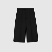 Colors and textures associated with the colder season inspire a new metropolitan wardrobe for Gucci's Cruise 2024 Collection. The menswear selection includes relaxed trousers in cotton and denim, styled with a layering approach, alongside a remodel of the classic overshirt. Crafted in black wool silk, these cropped pants celebrate minimal lines. - Black wool silk - Fitted waistband - Belt loops - Pleat detail - Cropped - Button and zip closure - Made in Italy - The product shown in this image is a size 46 (IT)