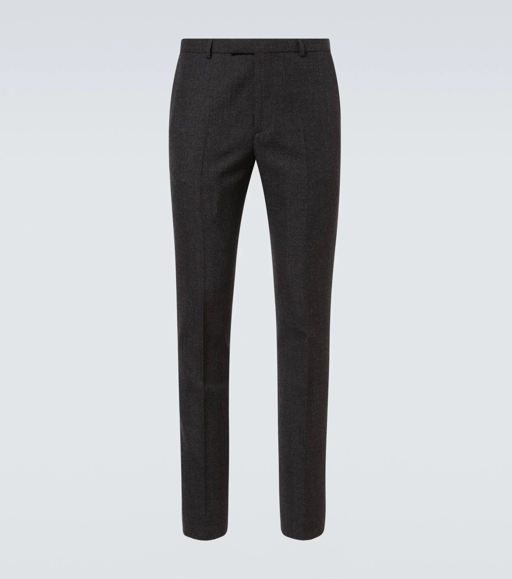 Gucci's tailoring perfectly balances a reverence for the past with a bold vision for the future. These slim pants are crafted from soft wool with side slit and back pockets, and finished with a pleated design for a refined final look. Product Details - Material: 100% wool - Care instructions: dry clean - Made in Italy - Designer color name: Grey/Black - Item color: gray - Pocket lining: 100% cotton - Contains non-textile parts of animal origin - Closure: zipper fly, button and hook fastenings - Pockets: side slit pockets, back pocket - Belt loops - Item number: P01078835 Size & Fit - True to size - Non-stretchy fabric - Slim-leg - Height of model is 189cm-74.5" and wears a size 50