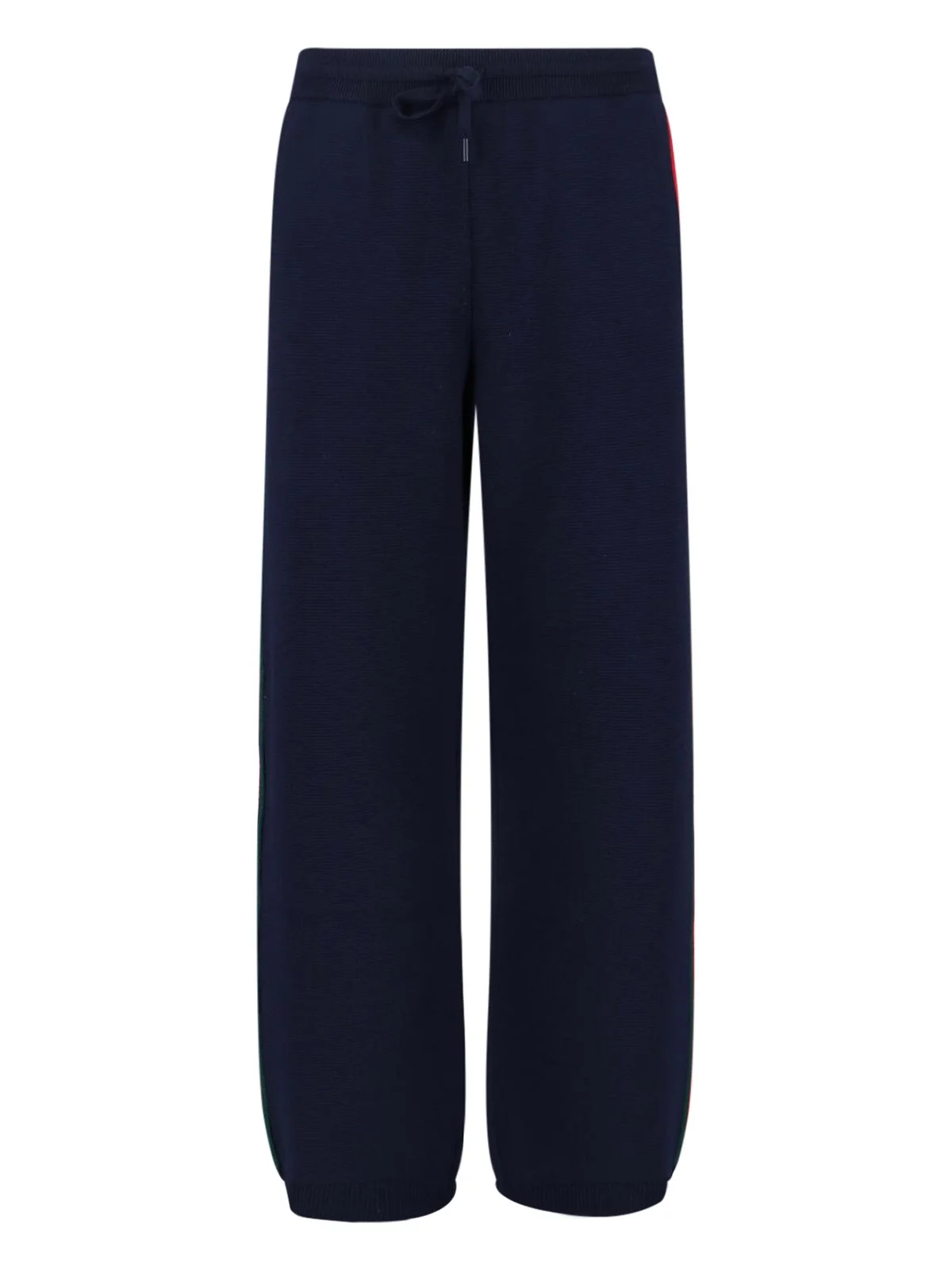 GUCCI BLUE WOOL TRACK PANTS WITH MEDIUM ELASTIC WAISTBAND, ADJUSTABLE DRAWSTRING AT THE WAIST, TWO SIDE POCKETS, TWO-TONE SIDE WEB TAPE, BACK POCKET, RIBBED TRIM, ELASTIC HEMS, STRAIGHT LEG. PRODUCT INFO PRODUCT CODE 857908 XKFGV4795 COMPOSITION: 100% WOOL SIZE AND FIT: REGULAR FIT MADE IN: ITALY