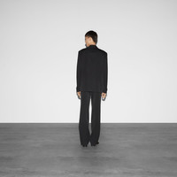Creative Director Sabato De Sarno reinvents the essential men's wardrobe for the Fall Winter 2024 collection, with wearabilty and fit becoming key statements. Formalwear pieces combine sartorial silhouettes with a punk-inspired aesthetic. This black wool suit in a double-breasted design is complete with Round Interlocking G buttons. - Black wool - Covered buttons and gold-toned Round Interlocking G button - Double-breasted jacket with peak lapel, chest pocket, two front flap pockets, inside pocket and rear vent - Straight leg trousers with split hem, belt loops, slash pockets, back button-through besom pockets and hook and zip closure - Jacket shoulder drop: 19.5"; based on a size 48 - Jacket sleeves length: 19.4"; based on a size 48 - Pant waist: 17.3"; based on a size 48 - Pant hem width: 10"; based on size 48 (IT) - Fitted - Jacket length: 30" based on a size 48 - Leg opening: 9.8" - Made in Italy - The product shown in this image is a size 48 (IT)