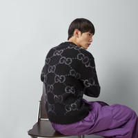 A pastel color palette brightens the wardrobe on cold days, adding an unexpected, contemporary twist. Knitwear pieces continue to sport the GG logo in alternating shades, while cashmere pieces offer a classic touch. Crafted from a soft wool knit, this versatile sweater reveals a bold allover GG intarsia. - Black wool - Allover GG intarsia - Crewneck - Dropped shoulder - Long sleeves - Rib trim - Please note, the appearance of the GG motif may differ for individual styles because of the type of material used - Length: 25.9", based on a size small - Made in Italy - The product shown in this image is a size small