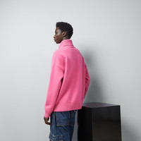 A pastel color palette brightens the wardrobe on cold days, adding an unexpected, contemporary twist. Knitwear pieces continue to sport the GG logo in alternating shades, while cashmere pieces offer a classic touch. This turtleneck sweater is presented in pink felted wool and enriched with a Gucci label. - Pink felted wool - Turtleneck - Dropped shoulder - Rib trim - Gucci label - Length: 27.1", based on a size medium - Made in Italy - The product shown in this image is a size medium