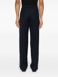 logo-patch trousers Highlights - Oxford blue - Elasticated waistband with internal drawstring - Two side welt pockets Made in Italy Composition Outer: Polyester 55%, Wool 45% Lining: Viscose 100%, Polyester 100% SIZE & FIT Model measurements Height 6 ft 2 in(1.87 m) Bust/Chest 38.18 in(97 cm) Hips 36.61 in(93 cm) Waist 29.13 in(74 cm) FittingInformation Designed for a straight-leg, allowing for an unrestricted and comfortable fit over the leg Adjust this piece’s waistband to your preference using the drawstring Made from a midweight non-stretch fabric