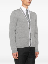 embroidered-logo cardigan Highlights - Grey - Wool - Button fastening - V-neck - White trim - Embroidered logo Made in Italy Composition Wool 100% SIZE & FIT Model measurements Height 6 ft 1 in(1.85 m) Bust/Chest 35.82 in(91 cm) Hips 37.79 in(96 cm) Waist 29.13 in(74 cm) Washing instructions Dry Clean Only