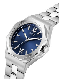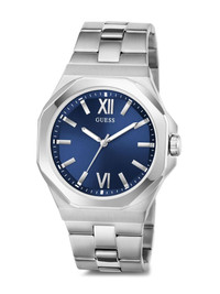 analog 42mm Highlights - 42mm - Stainless steel - Octagonal face - Navy blue - Sunray-patterned dial - Stainless steel link bracelet - Folding clasp - Water resistance up to 50m/5 atm - This item comes with a standard two-year warranty from the brand. Imported Composition stainless steel 100%, Mineral Glass 100% SIZE & FIT Measurement DIAMETER 1.65 in(4.2 cm)