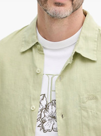 embroidered-logo linen shirt Highlights - Green - Embroidered logo - Embroidered chest pocket - Button fastening - Long sleeves - Polo collar Imported Composition Linen/Flax 100% Washing instructions Hand Wash