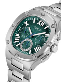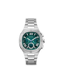 Headline 42mm Highlights - 42mm - Green - Recycled steel - Roman numeral dial - Index hands - Chronograph counters - Cushion face - Mineral glass - Centre-dent crown - Two chronograph pushers - Adjustable link bracelet - Folding clasp Imported Composition Mineral Glass 100%, Recycled Steel 100% SIZE & FIT Measurement DIAMETER 1.65 in(4.2 cm)