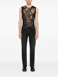 high-rise straight-leg jeans Highlights - Dark grey - Denim - Leather panel - High-waisted - Belt loops - Classic five pockets - Whiskering effect - Straight leg - Logo patch to the rear - Concealed fly and button fastening Imported Composition Calf Leather 100%, Cotton 100% SIZE & FIT Model measurements Height 6 ft 2 in(1.87 m) Bust/Chest 36.41 in(92.5 cm) Hips 35.43 in(90 cm) Waist 29.52 in(75 cm) FittingInformation Designed with a straight leg, these jeans allow for an unrestricted and comfortable fit over the leg Sturdy and hard-wearing, this denim piece offers no stretch This piece fits true to size – take your usual size Washing instructions Specialist Cleaning
