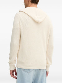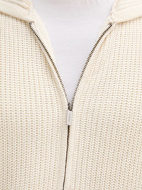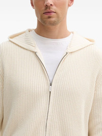hooded zip-up cardigan Highlights - Off-white - Ribbed knit - Zip fastening - Hooded neckline - Long sleeves - Welt pockets Imported Composition Fabric 100% Washing instructions Read Manufacturer Guidelines