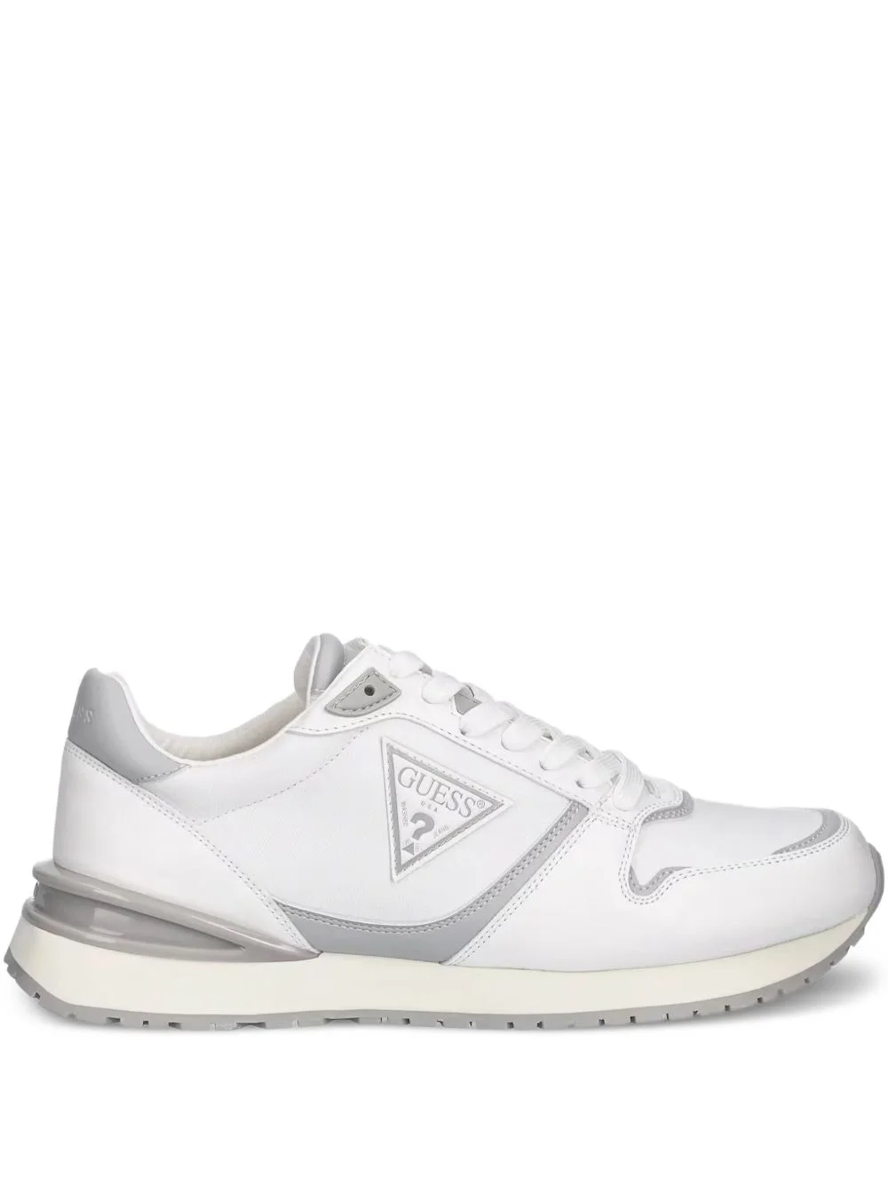 Island logo-plaque sneakers Highlights - White - Triangular logo plaque - Padded tongue - Contrasting accents - Cushioned sole - Lace-up design Imported Composition Outer: Polyurethane 55%, Polyester 25%, Polyamide 18% Lining: Fabric 100% Sole: Rubber 100%