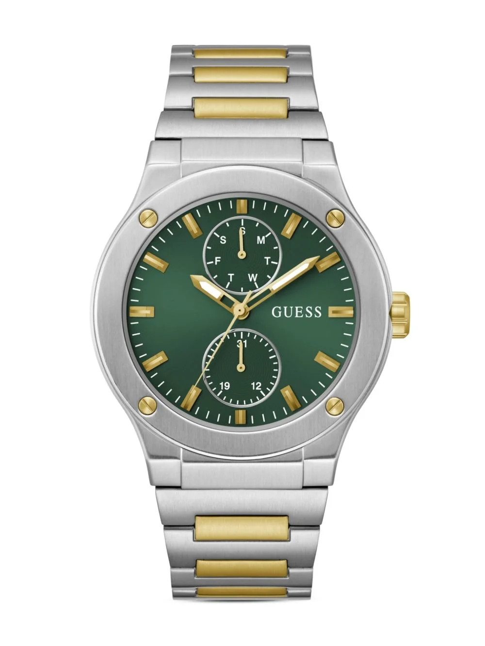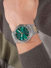 Jet 45mm Highlights - 45mm - Green - Index dial - Index hands - Chronograph counters - Round face - Mineral glass - Centre-dent crown - Adjustable link bracelet - Folding clasp Imported Composition stainless steel 100%, Mineral Glass 100% SIZE & FIT Measurement DIAMETER 1.77 in(4.5 cm)