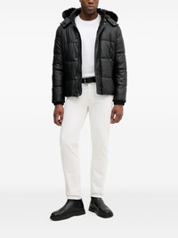 llong-sleeve hooded jacket Highlights - Black - Quilted - Logo plaque - Press-stud fastening - Welt pockets Imported Composition Outer: Polyurethane 100%, Polyester 95%, Elastane 5% Lining: Polyester 100% Washing instructions Read Manufacturer Guidelines