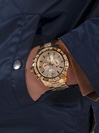 Majestic 48mm Highlights - 48mm - Gold-tone - Round face - Crystal embellishment - Digital–analogue display - Chronograph counters - Mineral glass - Stainless steel link bracelet - Folding clasp - Water resistance up to 50m/5 atm - This item comes with a standard two-year warranty from the brand. Imported Composition stainless steel 100%, Mineral Glass 100% SIZE & FIT Measurement DIAMETER 1.88 in(4.8 cm) WIDTH 0.94 in(2.4 cm)