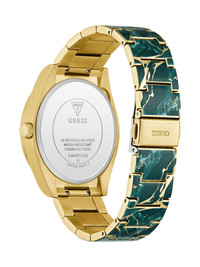 marble-pattern 42mm Highlights - Emerald green dial - Marble print case - Gold-tone stainless steel bracelet - Cushion case shape - 42mm case size - Three hand quartz movement - Screw down crown - Water resistance up to 50m/5 atm - This item comes with a standard one-year warranty from the boutique. Imported Composition stainless steel 100% SIZE & FIT Measurement DIAMETER 1.65 in(4.2 cm)