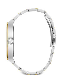 recycled-steel 42mm Highlights - 42mm - Recycled stainless steel - Quartz movement - Cushion-shaped case - Black - Baton dial - Sword hands - Sweeping second hand - Gold-tone - Silver-tone - Articulated links - Clasp fastening - Water resistance up to 30m/3 atm - This item comes with a standard one-year warranty from the brand. Imported Composition stainless steel 100%, Mineral Glass 100%