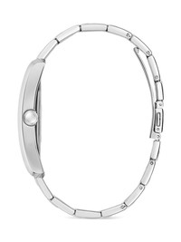 stainless steel 33mm Highlights - 33mm - Stainless steel case - Rectangular face - Black - Roman numeral dial - Sword hands - Sweeping second hand - Stainless steel link bracelet - Folding clasp - Water-resistant - This item comes with a standard one-year warranty from the boutique. Imported Composition stainless steel 100% SIZE & FIT Measurement DIAMETER 1.32 in(3.3 cm)