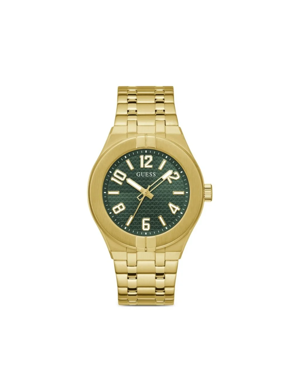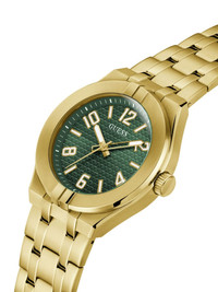 stainless steel manual-winding 44mm Highlights - 44mm - Forest green/gold-tone - Stainless steel - Round face - Guilloche dial - Arabic dial - Baton hands - Manual-winding movement - Screw-down crown - Adjustable link bracelet - Folding clasp - This item comes with a standard one-year warranty from the boutique. Imported Composition stainless steel 100% SIZE & FIT Measurement CIRCUMFERENCE 1.73 in(4.4 cm)
