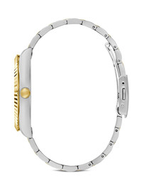 steel date 36mm Highlights - 36mm - Stainless steel - Quartz movement - Round face - Gold-tone - Roman numeral dial - Day-date display - Stainless steel link bracelet - Folding clasp - Water resistance up to 30m/3 atm - This item comes with a standard two-year warranty from the brand. Imported Composition stainless steel 100%, Mineral Glass 100% SIZE & FIT Measurement DIAMETER 1.41 in(3.6 cm)
