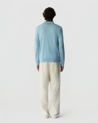DETAILS - Men's sizing, women should size down for a less oversized fit. - Classic crew fit - Extra light-weight - RIB TRIM AT HEM AND CUFF - POLO COLLAR IN FULL NEEDLE RIB - THREE-BUTTON PLACKET CLOSURE - Signature GIR branding at center back neck - 100% Cashmere - Premium cashmere sourced from inner Mongolia, manufactured in China - LEAH IS 5' 10'' / 178 CM AND IS WEARING A SIZE MEDIUM. - PAULO IS 6' 2" / 189 CM AND IS WEARING A SIZE MEDIUM.