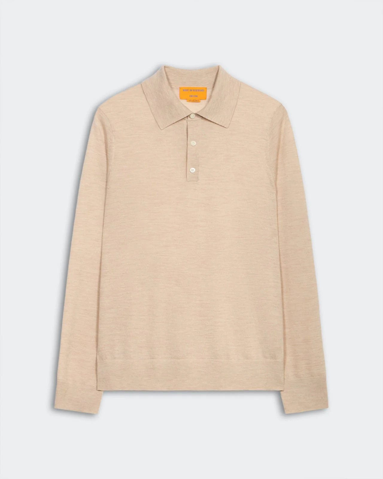 - Men's sizing, women should size down for a less oversized fit. - Classic crew fit - Extra light-weight - RIB TRIM AT HEM AND CUFF - POLO COLLAR IN FULL NEEDLE RIB - THREE-BUTTON PLACKET CLOSURE - Signature GIR branding at center back neck - 100% Cashmere - Bradley is 6' 2.5" / 189 cm and is wearing a Medium. - Julia is 5' 9.5" / 177cm and is wearing a medium. - Premium cashmere sourced from inner Mongolia, manufactured in China