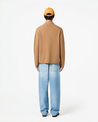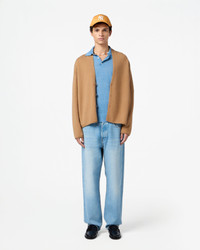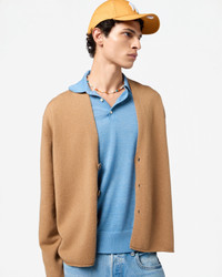 - Men's sizing, women should size down for a less oversized fit. - Medium-weight Cardigan - Three-button closure - Shawl collar stand - Jersey roll hem and cuff - 100% Cashmere - Julia is 5' 9.5" / 177cm and is wearing a medium. - BRADLEY IS 6' 2.5" / 189 CM and is wearing a small. - Premium cashmere sourced from inner Mongolia, manufactured in China
