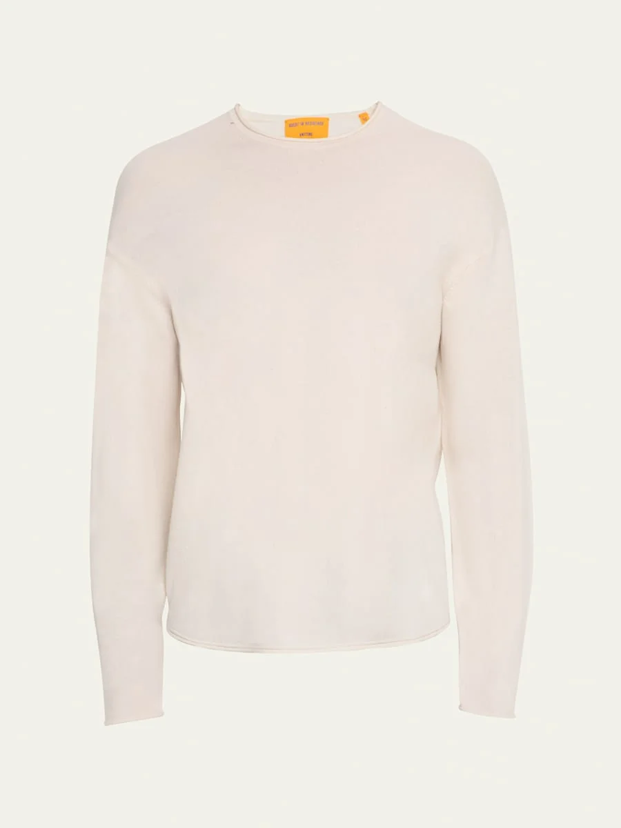 Guest in Residence lightweight knit sweater featuring jersey roll hem, neck, and cuffs Crew neckline Long sleeves Dropped shoulders Oversized fit Shirttail curved hem Pullover style Cashmere Imported Online Inquiries: BGS21_ND2CE| Store Inquiries: #5001275