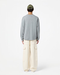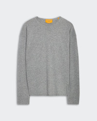 - Men's sizing, Women should size down for a less oversized fit. - Light-weight Crew neck - Dropped shoulder - Shirttail curved hem - Jersey roll hem, neck, and cuff - Signature GIR branding at center back neck - 100% Cashmere - Julia is 5' 9.5" / 177cm and is wearing a medium. - BRADLEY IS 6' 2.5" / 189 CM and is wearing a Medium. - Premium cashmere sourced from inner Mongolia, manufactured in China