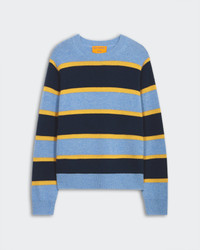 - Unisex stripe sweater - Mid-weight crew - Subtle raised stripes for added texture - Rib cuff, hem and neck trim - Signature gir branding at center back - 7 Gauge - 100% cashmere - Premium cashmere sourced from inner Mongolia, manufactured in China - NADINE IS 5' 8” / 175 CM and is wearing a size medium. - BRADLEY IS 6' 2.5" / 189 CM and is wearing a size medium.