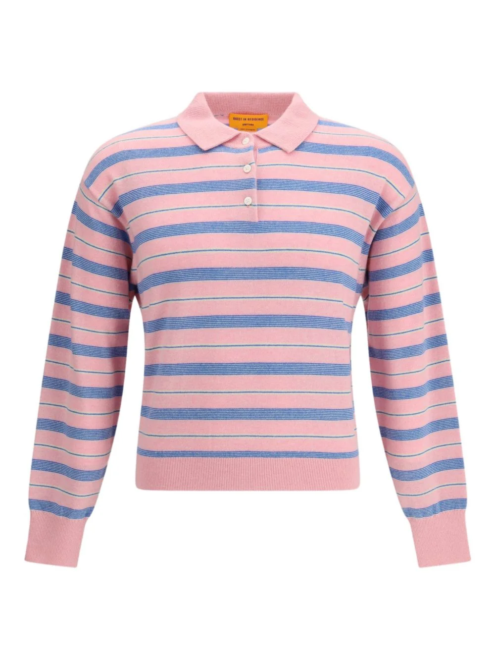 striped three-button polo shirt Highlights - Light pink - Striped - Rib stitch polo collar - Three button placket - Ribbed cuffs - Ribbed hem Imported Composition Cashmere 100% Washing instructions Read Manufacturer Guidelines