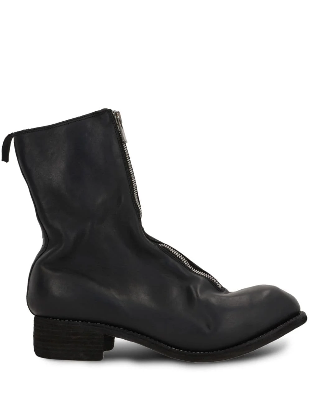45mm ankle boots Highlights - Black - Leather - Front zip fastening - Crinkled finish - Round toe - Ankle-length - Double pull-tab at the opening - Block heel Imported Composition Lining: Calf Leather 100% Sole: Calf Leather 100% Outer: Calf Leather 100% SIZE & FIT Measurement HEEL 1.57 in(4 cm) HEIGHT 9.84 in(25 cm)