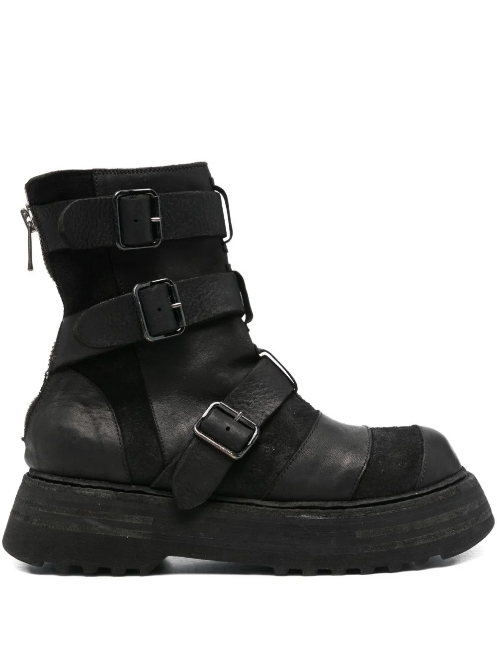multi-strap boots Highlights - Black - Buckle detail - Rear zip fastening - Panelled design - Ridged rubber sole - Strap detail Imported Composition Outer: Calf Leather 100%, Horse Leather 100% Sole: Rubber 100% Lining: Calf Leather 100%