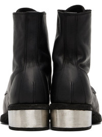 Ankle-high piece-dyed grained horse leather boots. · Lace-up closure · Full nubuck lining · Topstitching at Goodyear welt · Metal block heel · Leather sole · Heel: H1.75" Supplier color: Black Upper: horse leather. Sole: leather. Made in Italy 251703M255000