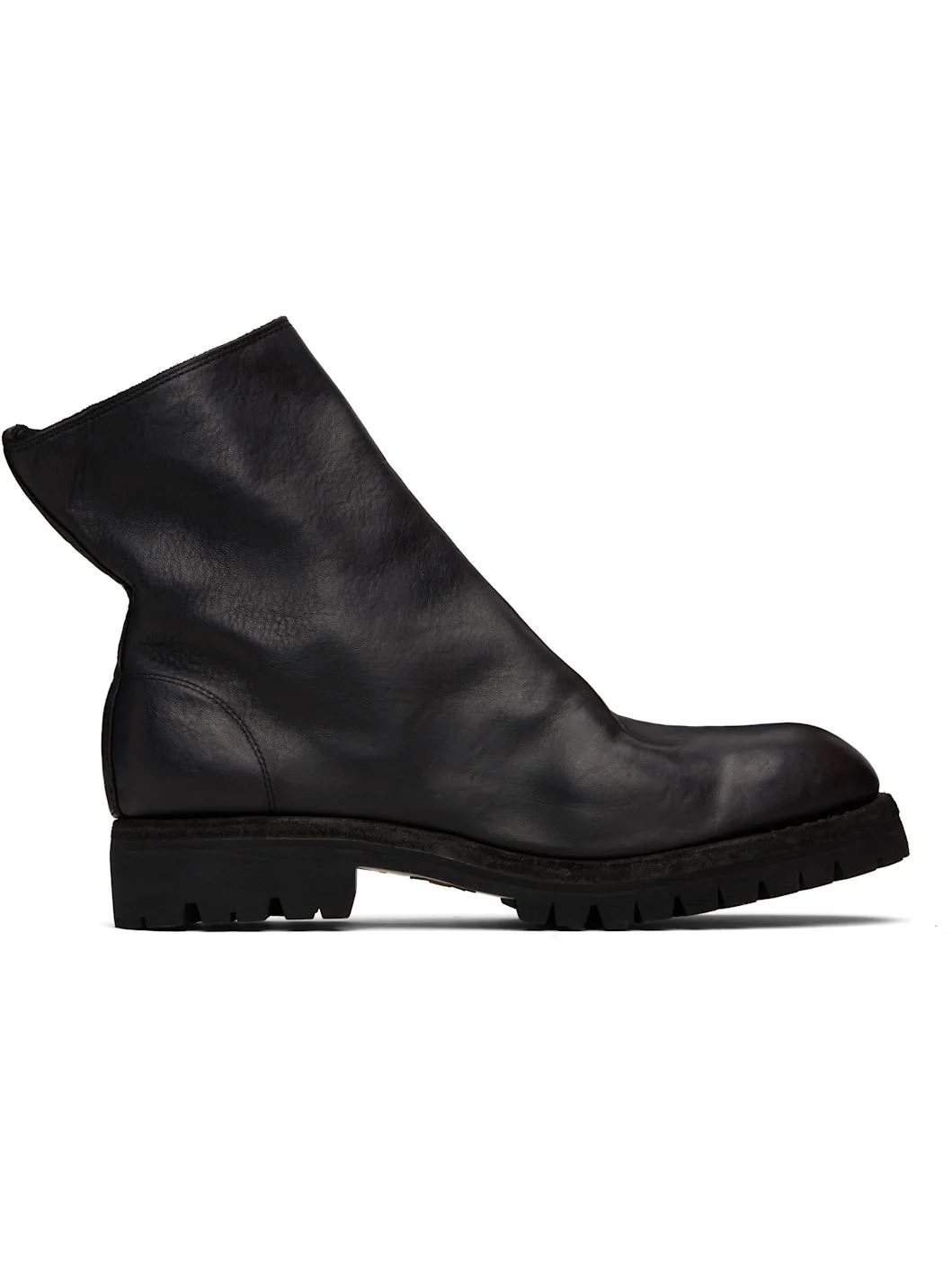 Ankle-high full-grain horse leather boots. · Object-dyed · Zip closure at inner side · Goodyear welt · Stacked rubber block heel · Treaded Vibram® rubber sole · Logo-engraved antiqued silver-tone hardware · Heel: H1.5" Supplier color: Blkt Upper: horse leather. Sole: rubber. Made in Italy 252703M228002