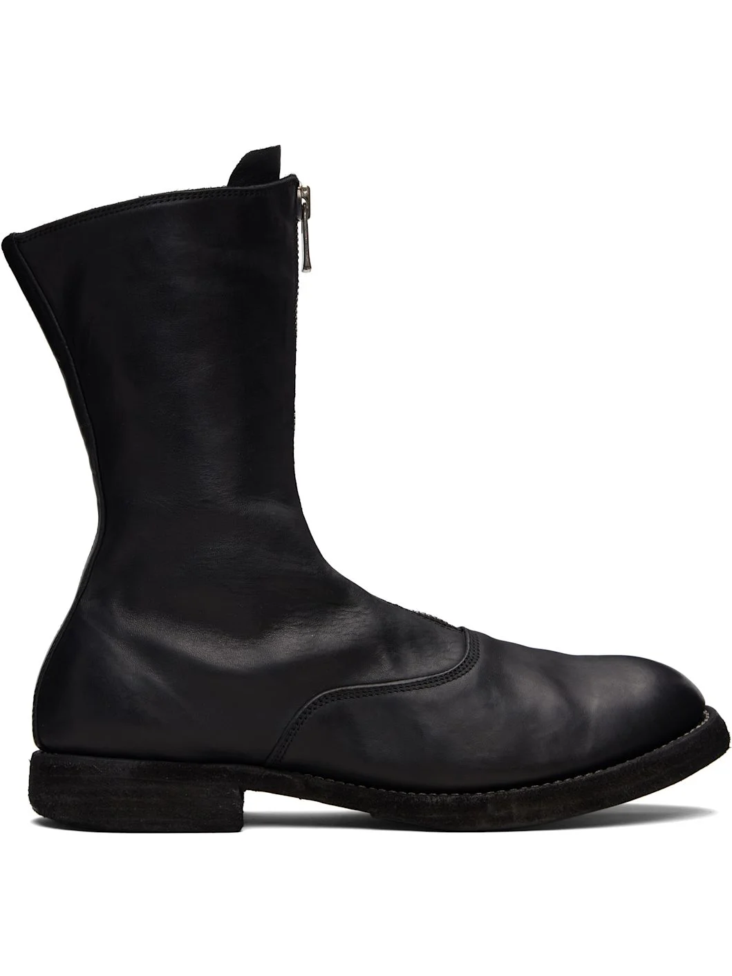 Ankle-high grained horse leather boots. · Zip closure at vamp · Contrast stitching in white at welt · Rubber midsole · Leather sole Supplier color: Blkt Upper: horse leather. Sole: leather, rubber. Made in Italy 252703M228007