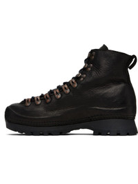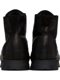 Ankle-high full-grain leather boots. · Lace-up closure · Padded tongue · Pull-tab at heel collar · Treaded Vibram® rubber sole · Heel: H1.5" Supplier color: Blkt Upper: leather. Sole: rubber. Made in Italy 252703M255001