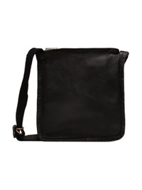 Grained horse leather messenger bag in black. · Adjustable cinch crossbody strap · Zip closure · Zip pocket at interior · Suede interior · H11.5" x W9.5" Supplier color: Blkt