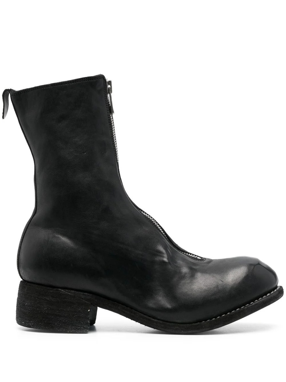 front-zip leather boots