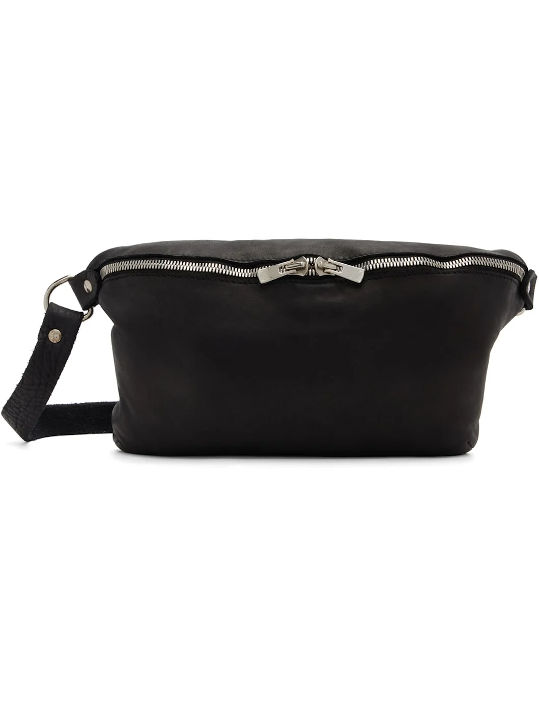Grained horse leather pouch. · Adjustable crossbody strap · Two-way zip closure · Unlined · Logo-engraved silver-tone hardware · H8" x W12.5" Supplier color: Blkt Horse leather. Made in Italy 251703M170005
