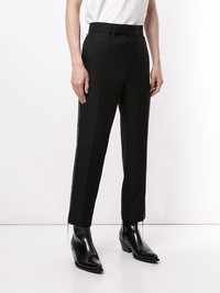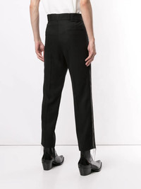 chain detail wool trousers Highlights - Black - Wool - Side chain detailing - High waist - Concealed front fastening - Belt loops - Rear welt pocket Imported Composition Wool 100% SIZE & FIT Model measurements Height 6 ft 0 in(1.84 m) Bust/Chest 35.43 in(90 cm) Hips 35.82 in(91 cm) Waist 28.74 in(73 cm) FittingInformation This piece fits true to size. We recommend you get your regular size Designed for a slim fit at the waist and loose over the leg Made with a mid-weight non-stretch fabric Washing instructions Dry Clean Only