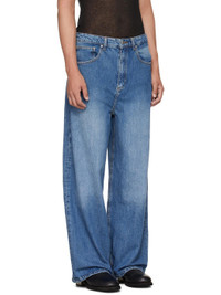 Non-stretch denim jeans. · Fading throughout · Wide-leg · Mid-rise · Belt loops · Five-pocket styling · Zip fly · Logo patch at back waistband · Contrast stitching in tan Supplier color: Blue rinsed 100% cotton. Made in Turkey 252827M186001