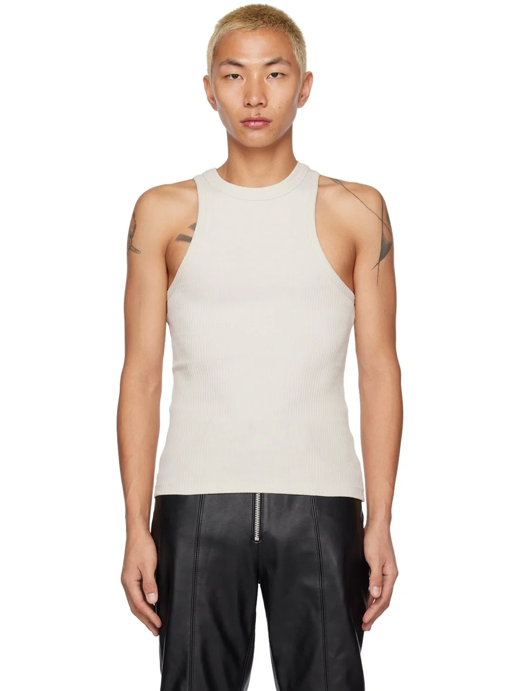 Rib knit stretch cotton tank top. · Crewneck · Logo plaque at back collar · Racer back Supplier color: Light sand 90% cotton, 10% elastane. Made in Denmark 231827M214005