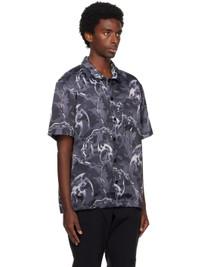 Crinkled polyester satin shirt. Graphic pattern printed throughout. · Spread collar · Button closure · Patch pocket at chest · Graphic hardware at vented side seams Supplier color: Camo 100% polyester. Made in Turkey 232827M192017
